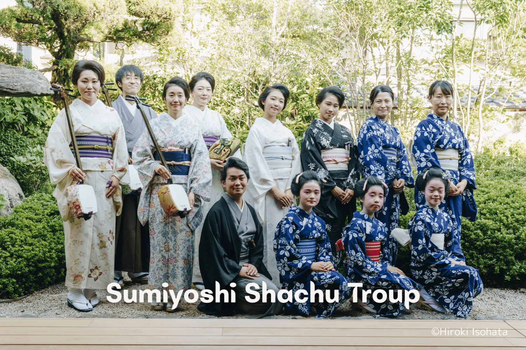 The hospitality of Sumiyoshi Shachu Troup is based on respecting the beautiful traditions of Japan, while also ensuring the experience is warm and welcoming to international guests. Entering this special venue and enjoying its relaxing atmosphere and attentive hospitality provides for a unique and precious memory.