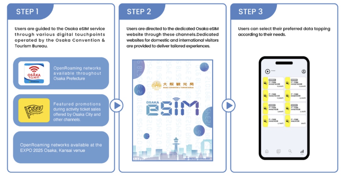 The Osaka Convention & Tourism Bureau (based in Chuo Ward, Osaka City, Osaka Prefecture. Chairman: Hiroshi Mizohata) and KDDI Corporation (based in Chiyoda Ward, Tokyo. President and CEO: Hiromichi Matsuda) have announced the addition of new options for “Osaka eSIM” starting June 25, 2025, and will launch new data add-ons for long-term visitors, including 30 GB (30 Days) and 15 GB (15 Days) options.