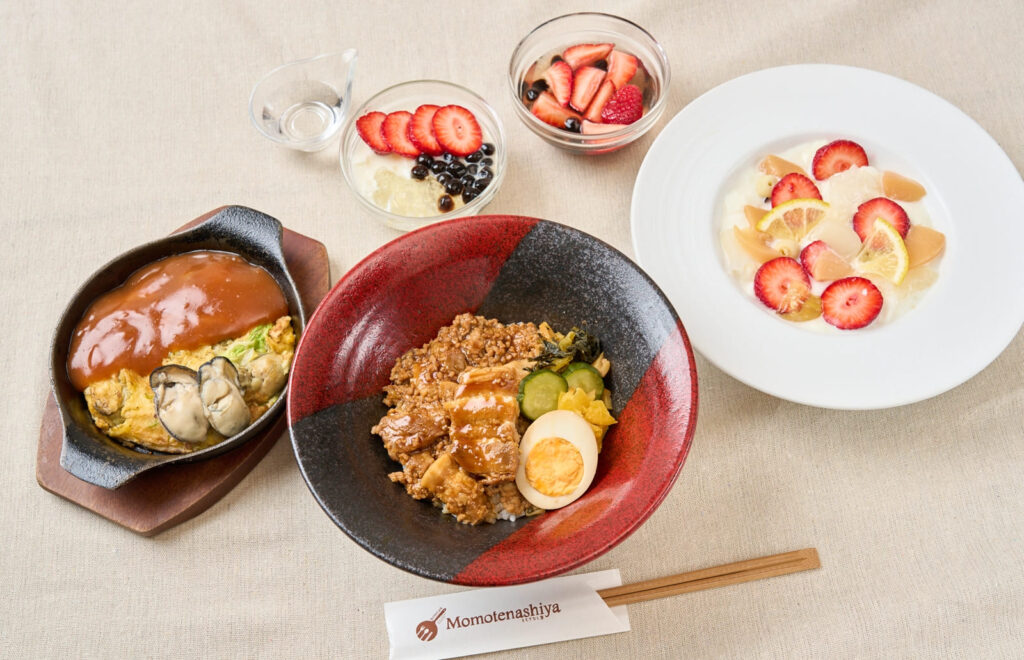 滷肉飯搭配了半熟蛋、絞肉和厚切豬肉,蚵仔煎用的是飽滿碩大的牡蠣,豆花還搭配上新鮮水果,這些台灣料理在加入岡山食材後,產生了獨特的變化,非常美味。
